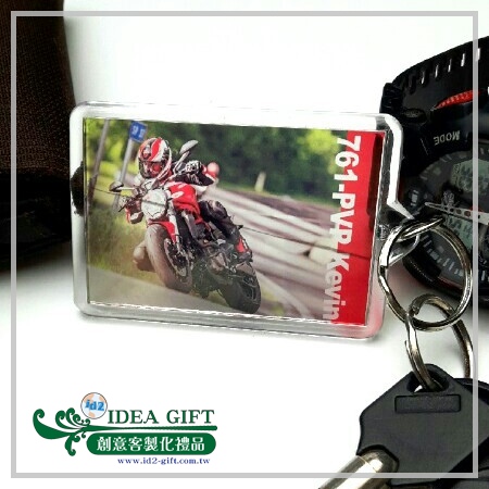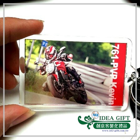 雷射光膜透明寫真鑰匙圈,製成當下流行的機車追焦的相片,